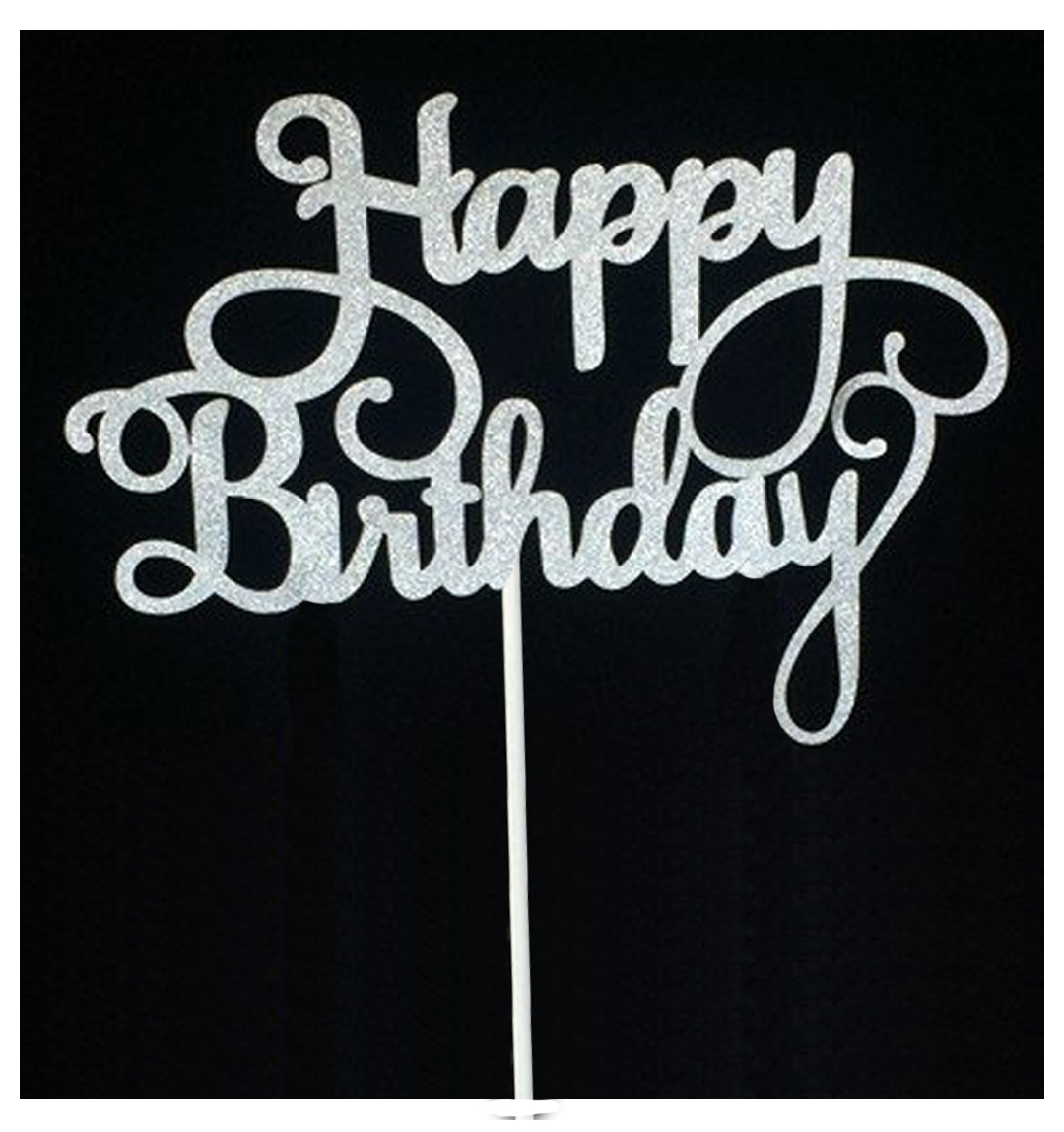 Birthday Cake Topper Glitter - Silver