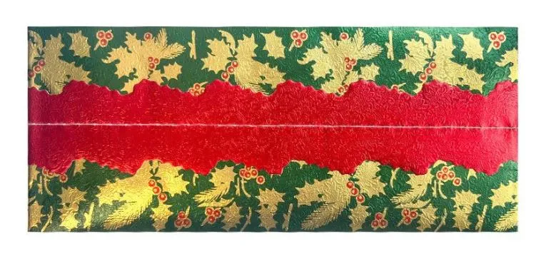 Cake Frill Green Holly Print Red Plain Centre 1 Meter Length