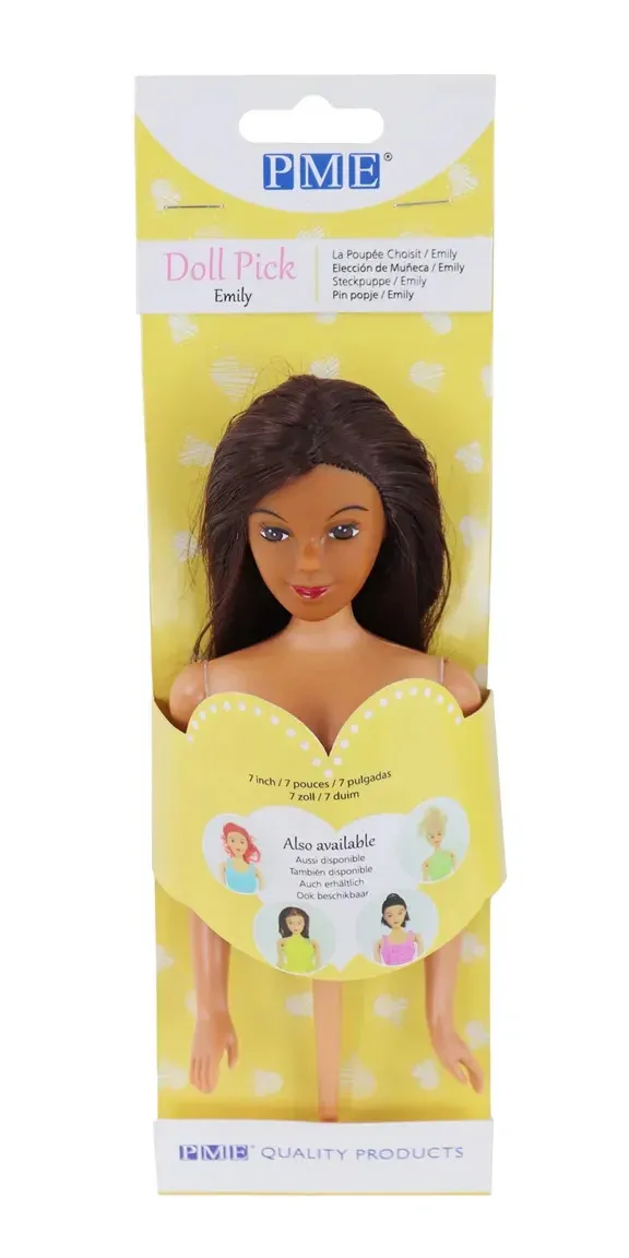 This gorgeous PME head doll pick perfect to finish off any Barbie or princess shaped doll cake. This easy to insert doll comes with long hair and no clothes making it easy to cover in a paste of any colour to match her dress. Another huge benefit of this doll is that her arms are also moveable. Measurements approximately: 7″ high.