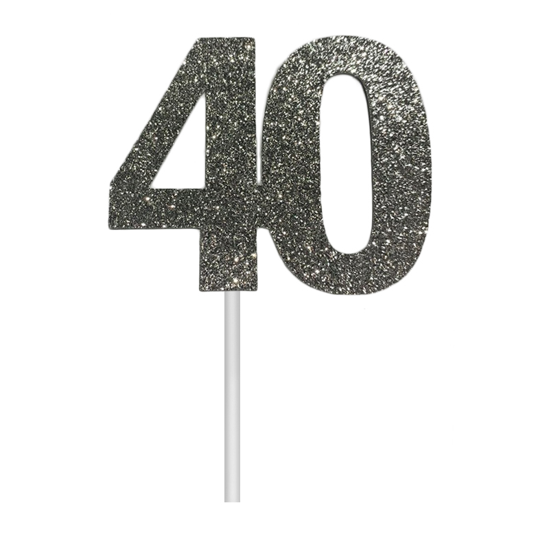 Glitter 40 Silver Cake Topper