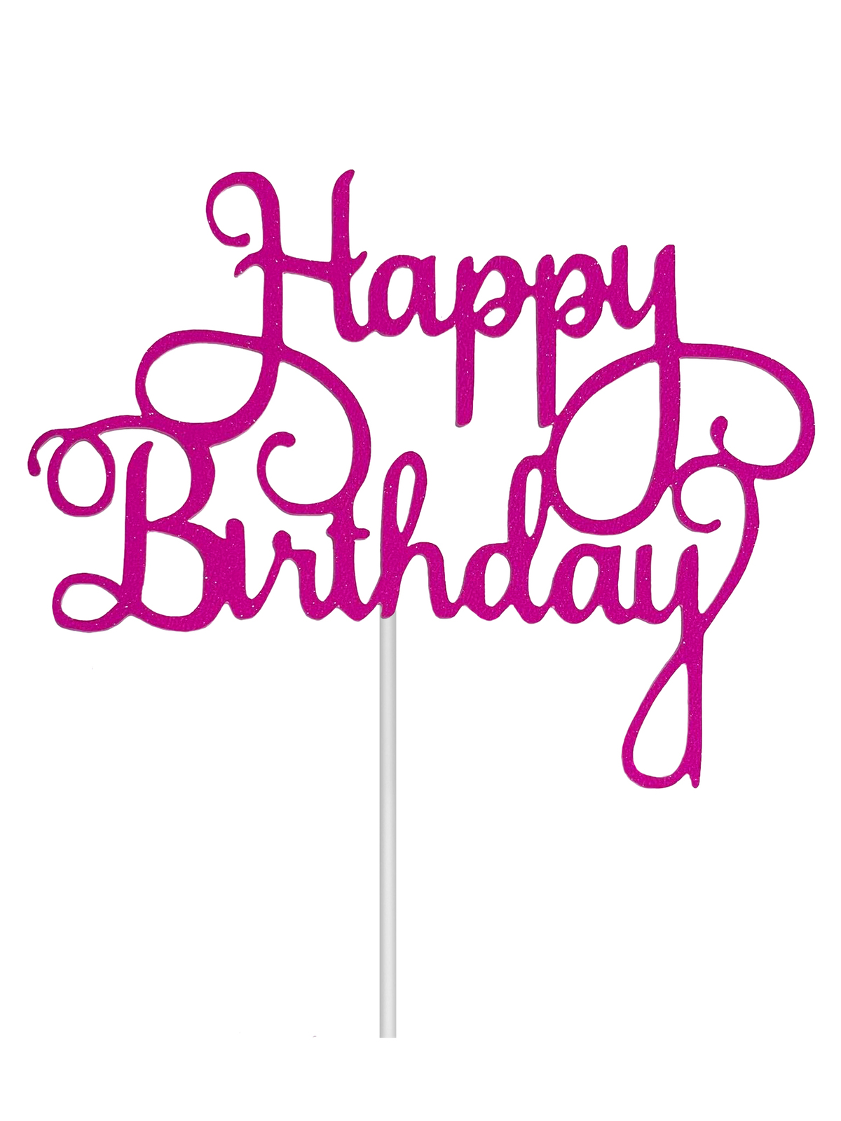 Happy Birthday Cake Topper Sign Large - Hot Pink