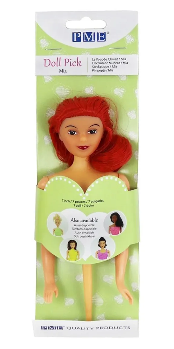 This gorgeous PME head doll pick perfect to finish off any Barbie or princess shaped doll cake. This easy to insert doll comes with long hair and no clothes making it easy to cover in a paste of any colour to match her dress. Another huge benefit of this doll is that her arms are also moveable. Measurements approximately: 7″ high.