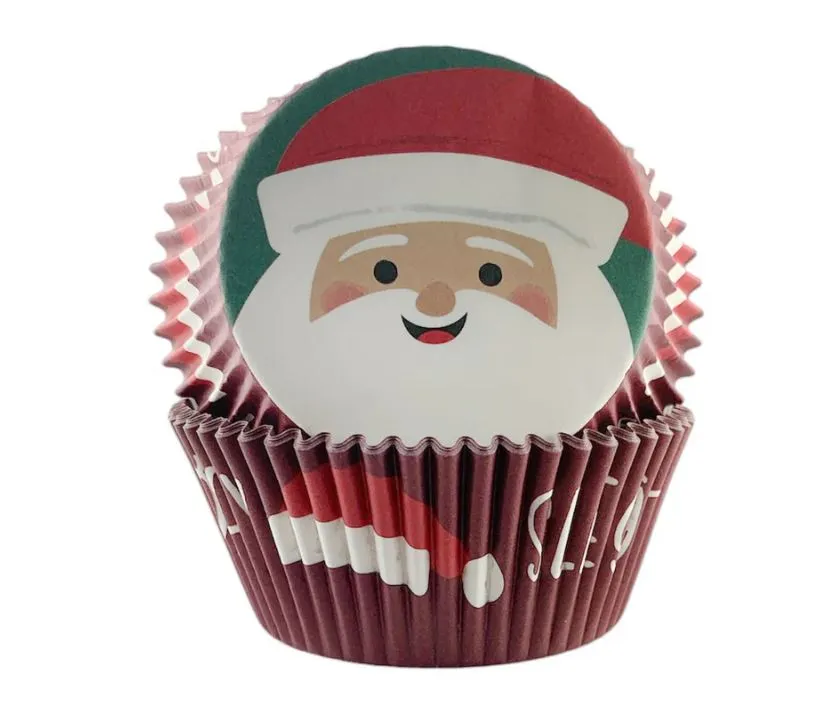 Bake cupcakes and muffins for your Christmas celebration or any winter occasion in these cute paper Wilton Holiday Christmas Cupcake Liners with Santa and his sleigh printed on them. These colorful holiday cupcake liners are sure to be a hit! They fit standard muffin and cupcake pans and minimize cleanup by allowing your treats to simply pop out of the pan when they're done. You can also use these baking cups to hold small party snacks, like nuts and candies.