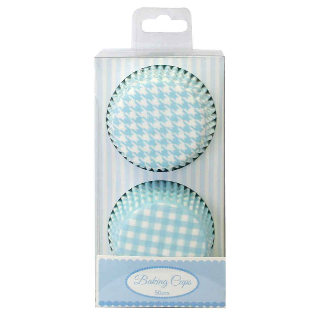 GINGHAM & HOUNDSTOOTH BAKING CASES BLUE - 50 PACK